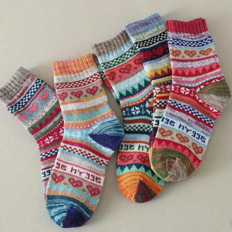 Diese kuscheligen Crew-Socken bestechen durch ihr bezauberndes Herz-Strick-Design mit aufwendigen Vintage-Mustern und satten, farbenfrohen Tönen, die jedes Outfit mühelos aufwerten. Aus weichem Strickmaterial gefertigt, bieten sie eine bequeme Passform, die Komfort und Stil vereint und Ihre Füße den ganzen Tag über warm und kuschelig hält. Die lebendigen Herzmotive und auffälligen Designs verleihen Ihrer Garderobe ein verspieltes und zugleich einzigartiges Flair. Dank der Einheitsgröße können Sie diese modischen Socken ganz einfach tragen. Diese Socken verleihen Ihrem Alltagslook eine charmante Note und sind eine wunderbare Ergänzung für Ihre Kollektion.