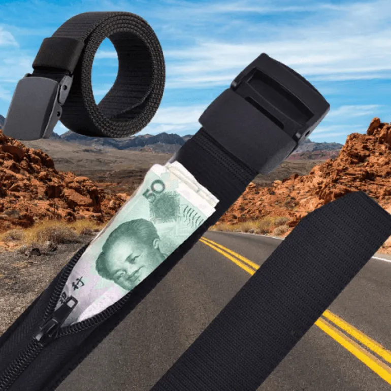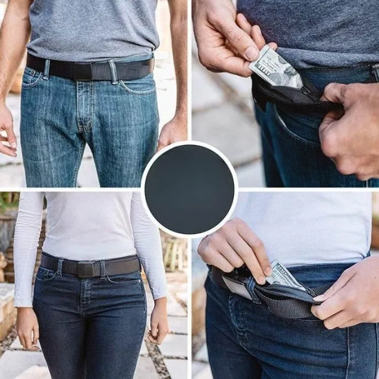 Schützen Sie Ihre Wertsachen auf Reisen mit dieser diskreten, diebstahlsicheren Reisegürteltasche. Sie ähnelt einem herkömmlichen Gürtel und verfügt über eine clever versteckte Reißverschlusstasche, in der Sie Bargeld, Münzen, Tickets oder andere kleine wichtige Gegenstände sicher verstauen können. Diese praktische Lösung sorgt dafür, dass Ihr Geld vor potenziellen Dieben verborgen bleibt und Sie auf Reisen beruhigt sein können.