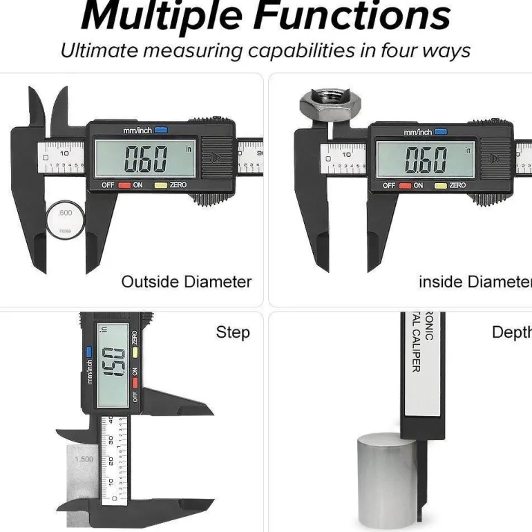 Dieser elektronische digitale Messschieber verfügt über zwei praktische Messmodi, mit denen Sie per Knopfdruck einfach zwischen Zoll- und Millimetermessungen wechseln können. Mit einem Messbereich von 0–150 mm, einer Auflösung von 0,1 mm und einer Genauigkeit von ±0,2 mm erhalten Sie stets präzise Ergebnisse. Dank der intelligenten Nullstellfunktion können Sie an jedem beliebigen Punkt der Skala eine neue Messung starten. Ideal für Differenzialmessungen.