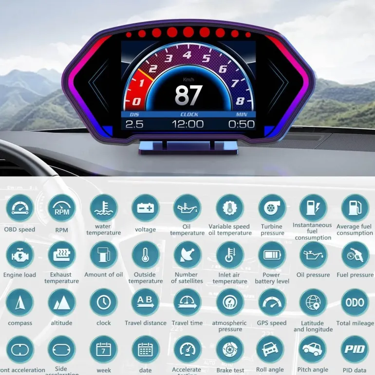 Verbessern Sie Ihr Fahrerlebnis mit diesem kristallklaren Head-up-Display-Tachometer, der präzise und leicht ablesbare Geschwindigkeitsmessungen liefert. Dieses innovative Autozubehör projiziert wichtige Informationen direkt auf Ihre Windschutzscheibe, sodass Sie stets informiert sind, ohne Ihre Aufmerksamkeit von der Straße abzuwenden. Erleben Sie eine moderne und effiziente Möglichkeit, Ihre Geschwindigkeit zu überwachen und gleichzeitig die Vorteile fortschrittlicher Technologie zu nutzen.