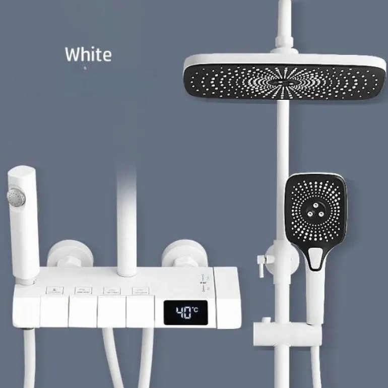 Verwandeln Sie Ihren Alltag mit dem digitalen Duschset Elegant Symphony Rainfall – eine elegante Wahl für jedes moderne Badezimmer. Dieses stilvolle Set verfügt über einen großzügigen Regenduschkopf, der Sie mit einem wohltuenden Wasserfall umhüllt und sanften Regen simuliert – für ein belebendes Duscherlebnis. Die dazugehörige Handbrause bietet Vielseitigkeit und ist ideal für gezieltes Abspülen und Flexibilität bei Ihrer Baderoutine.