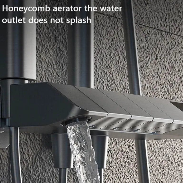 Dieses digitale Duschset aus robustem Messing mit polierter Oberfläche vereint Eleganz und Funktionalität. Der Ventilkern aus hochwertiger Keramik sorgt für Langlebigkeit und Zuverlässigkeit. Mit den Abmessungen 290 mm x 650 mm x 180 mm (11,42 Zoll x 25,59 Zoll x 7,09 Zoll) passt es bequem in die meisten Duschräume. Die fortschrittliche PVD-Beschichtung verbessert nicht nur die Ästhetik, sondern trägt auch zur Langlebigkeit bei und sorgt dafür, dass das beeindruckende Erscheinungsbild lange erhalten bleibt.