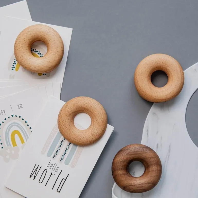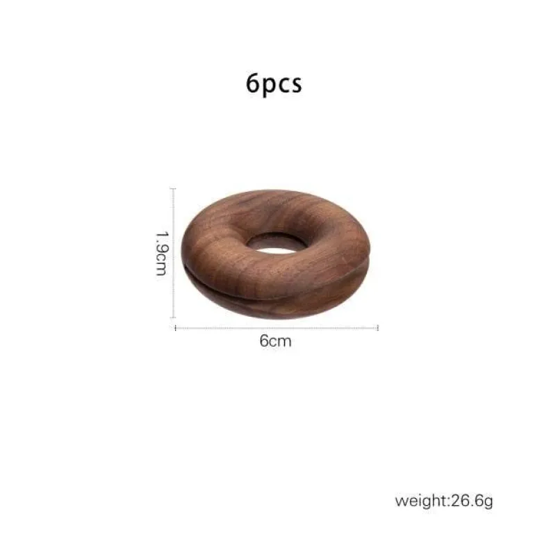 – 6 Donut-Siegelklammern aus Holz.