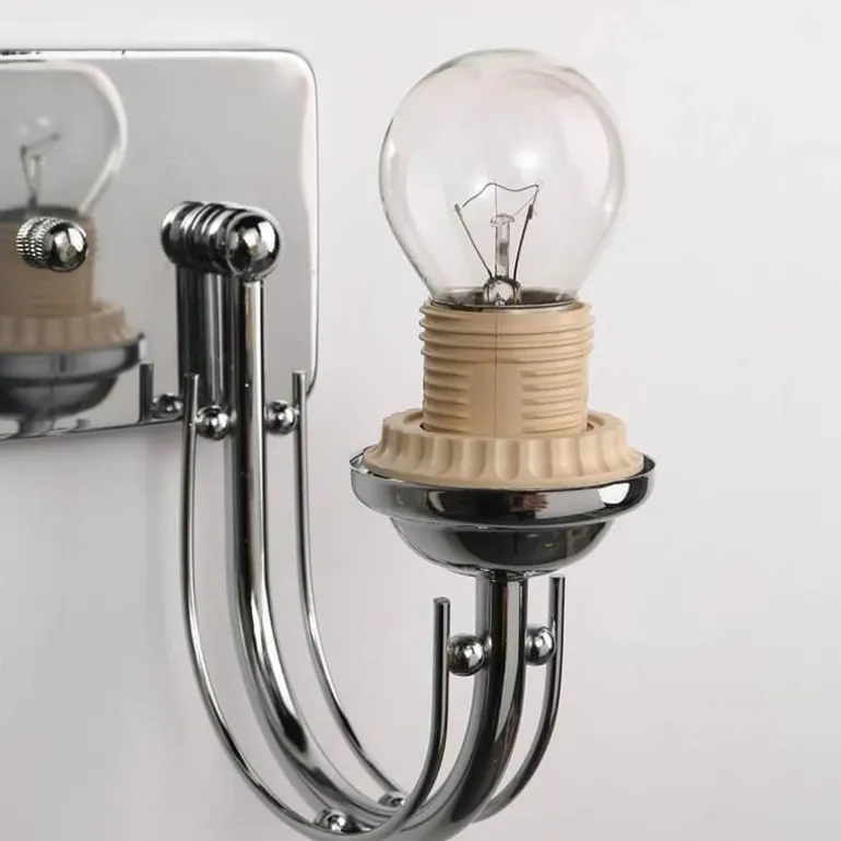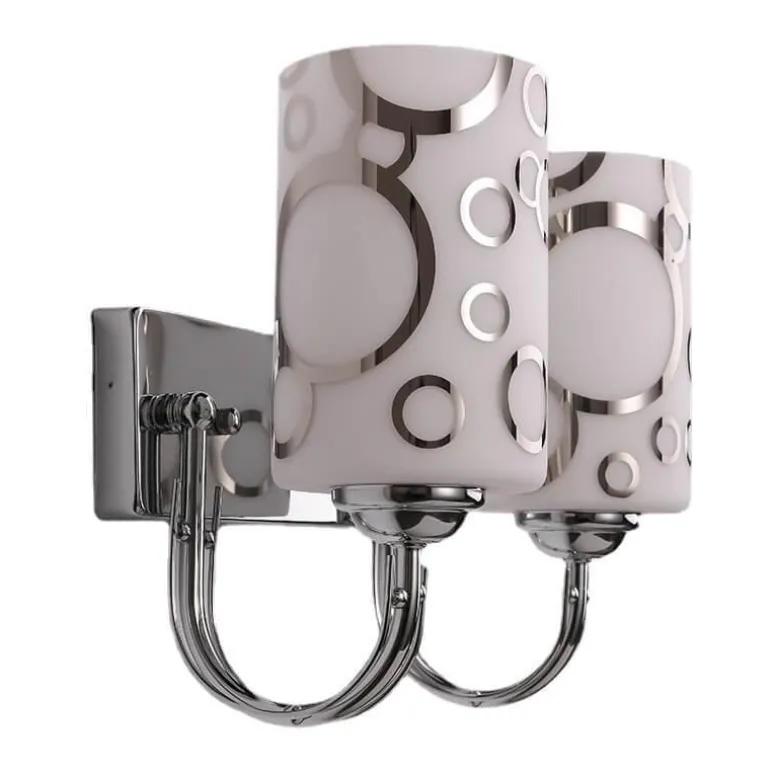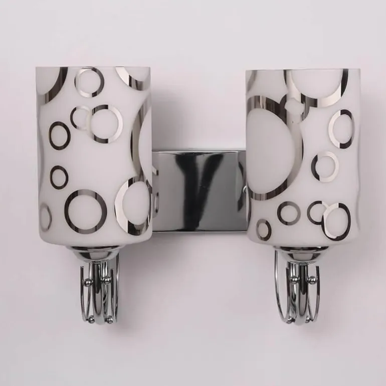 Diese kompakte Wandleuchte aus robustem Glas und Eisen vereint Eleganz und langlebige Qualität. Die verchromte Fassung verleiht ihr einen edlen Touch und passt zu vielen Einrichtungsstilen.