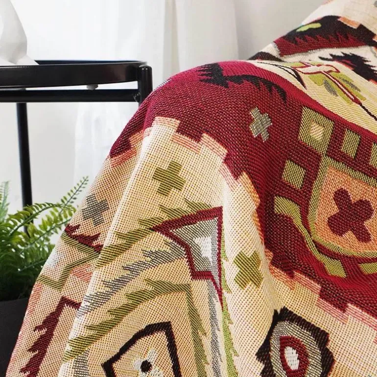 Tauchen Sie ein in den Komfort der Geo Ethnic Throw Blanket, deren jeder Faden Wärme und Eleganz verkörpert. Verwandeln Sie Ihr Entspannungserlebnis mit diesem exquisiten Stück und verleihen Sie Ihrem Zuhause einen Hauch von internationalem Charme. Praktisch und schick – eine durchdachte Lösung zur Verschönerung Ihres Wohnraums. Entdecken Sie mehr bei Decor .