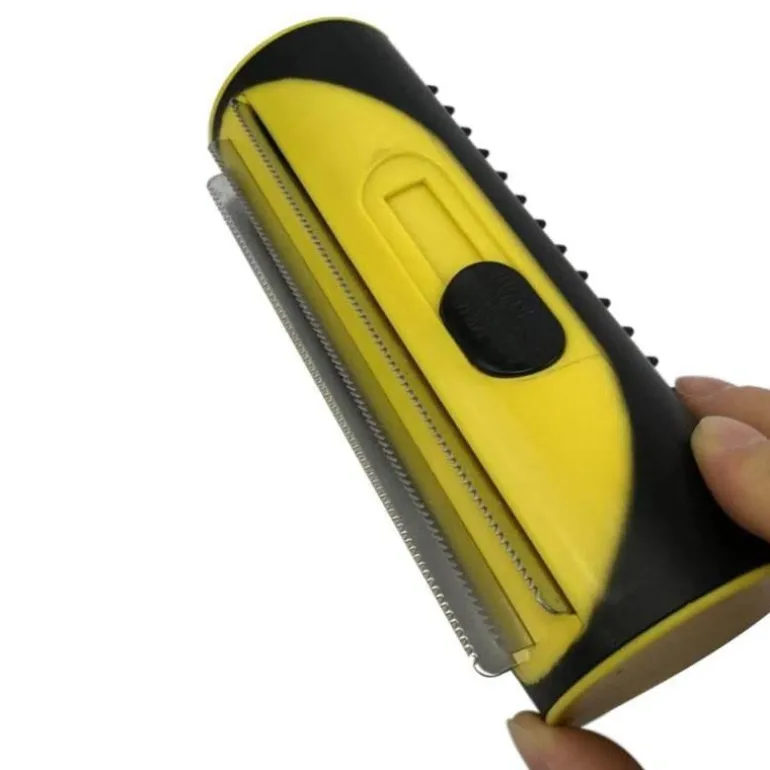 Dieses Pflegewerkzeug ist mit drei einziehbaren Edelstahlkämmen mit kurzen Zähnen ausgestattet, die Haare und Fasern effizient entfernen und so eine schnelle und gründliche Fellpflege gewährleisten. Geeignet für Katzen und Hunde, entfernt es effektiv lose Haare und unerwünschten Schmutz und sorgt für ein sauberes und gepflegtes Fell Ihres Haustieres.