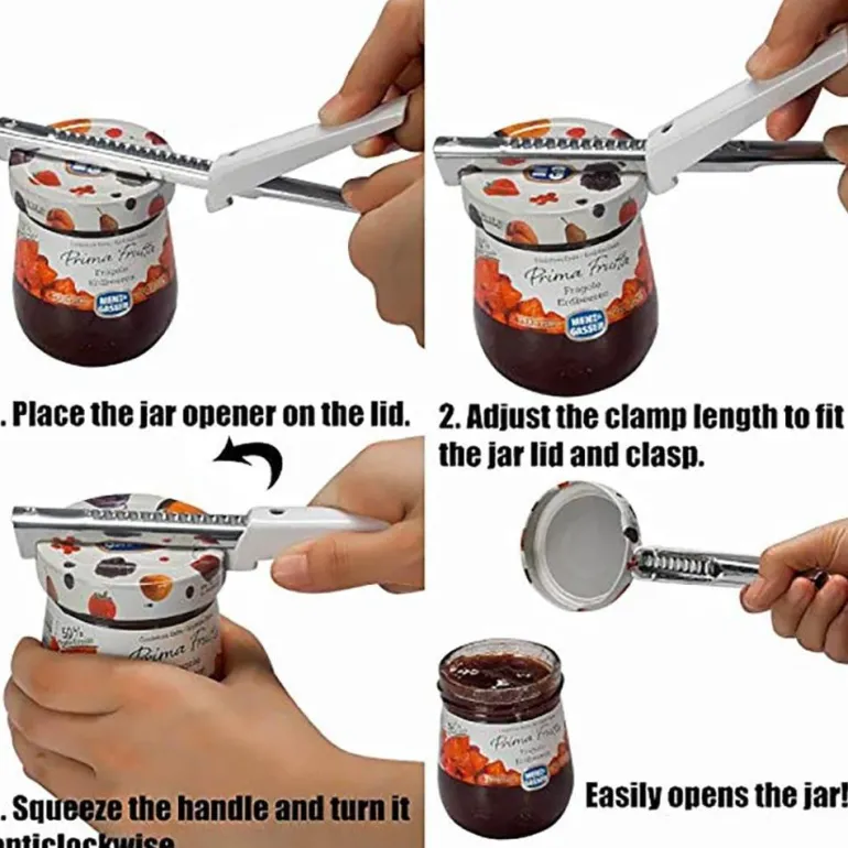 Durch die einstellbare Öffnungsfunktion passt sich das Werkzeug an verschiedene Flaschenhalsgrößen an und ist somit mit den meisten Marmeladengläsern sowie kleineren Flaschen, einschließlich Cola- und Weinflaschen, kompatibel.