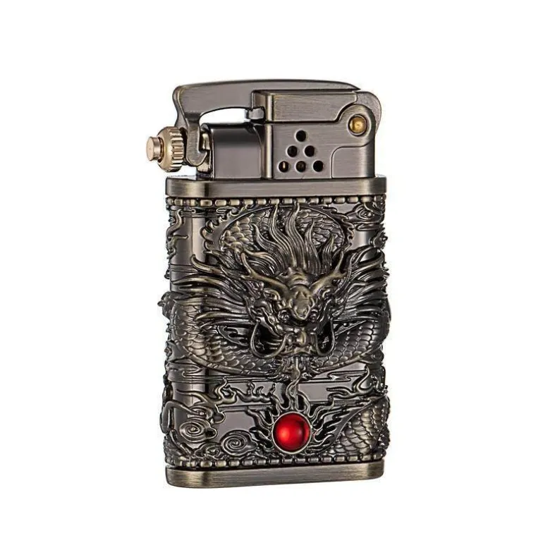 Das Dragon Wings Messing-Petroleumfeuerzeug bietet eine beeindruckende Kombination aus Funktionalität und künstlerischem Design und ist ein echter Hingucker. Das aufwendige Drachenflügel-Motiv auf Vorder- und Rückseite zeugt von exquisiter Handwerkskunst und Liebe zum Detail. Hergestellt aus hochwertigem Messing, ist es nicht nur langlebig, sondern liegt auch angenehm in der Hand.