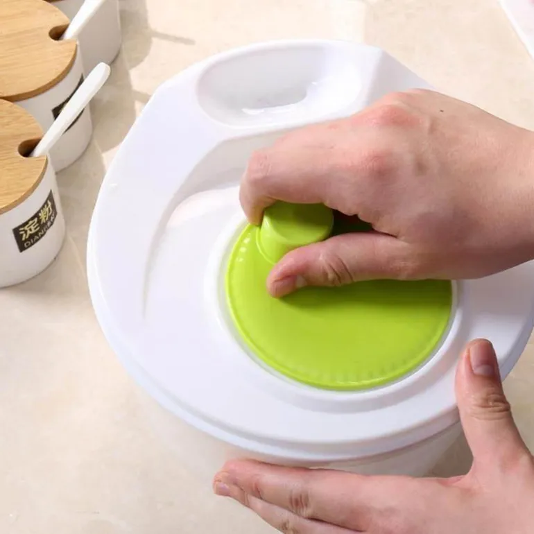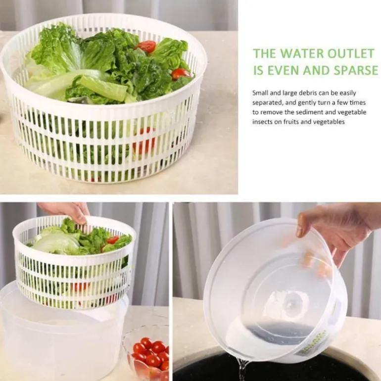 Wir präsentieren unsere drehbare Gemüseabtropfbox – eine einfache, praktische und stilvolle Lösung, mit der Ihr Salat nach dem Waschen knackig und frisch bleibt. Mit dieser multifunktionalen Salatschleuder trocknen Sie Ihren gewaschenen Salat mühelos durch einfaches Drehen der Kurbel.