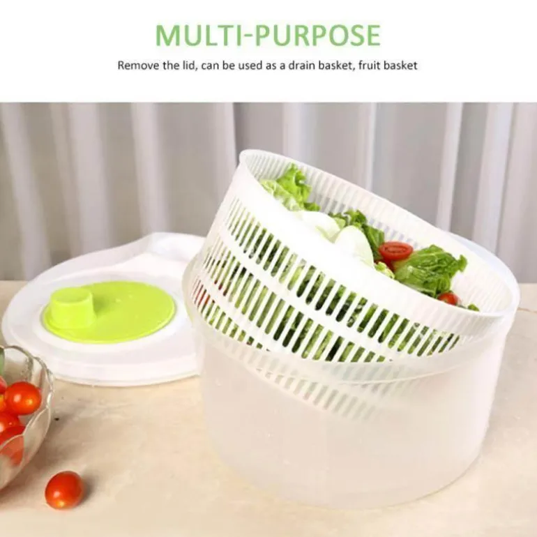 Der Trockenkorb dient gleichzeitig als Sieb und eignet sich somit ideal zum Waschen verschiedener Gemüsesorten. Der durchdachte Deckel verfügt über eine Öffnung, durch die Sie Dressings ganz einfach hinzufügen und vermischen können.
