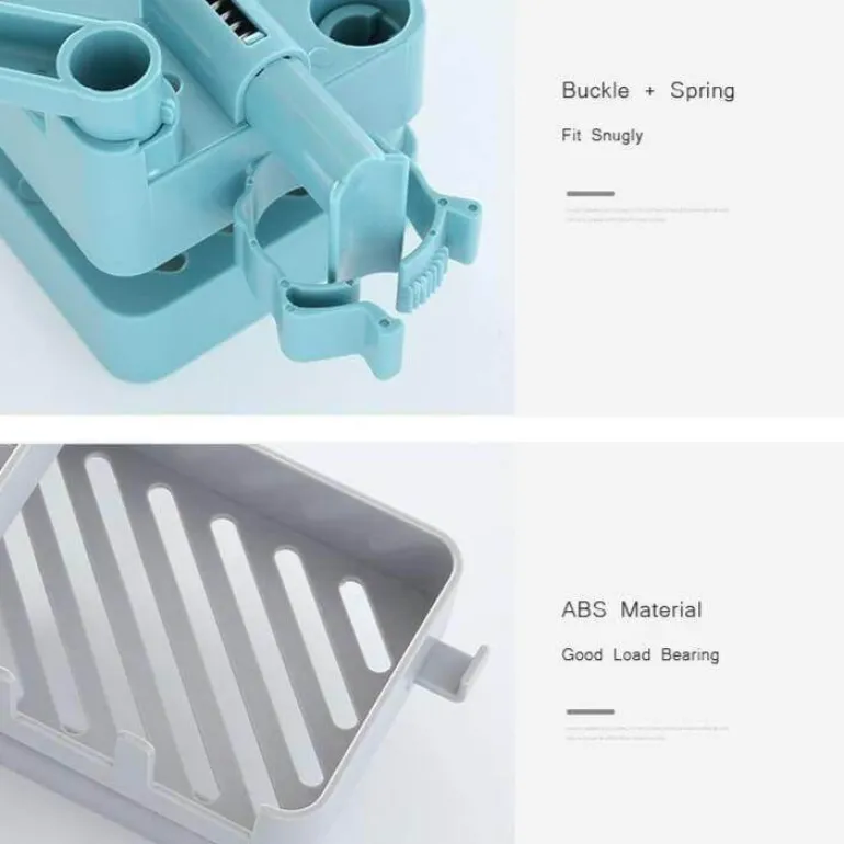 Das innovative Design umfasst Aufhänger für müheloses Verstauen. Der Boden ist durchdacht ausgehöhlt und belüftet, um die Entwässerung und Luftzirkulation zu fördern und Ihre Gegenstände trocken und frisch zu halten. Die 360-Grad-Drehfunktion ermöglicht einfachen Zugriff und stellt sicher, dass Sie Ihre Reinigungsutensilien problemlos erreichen können.