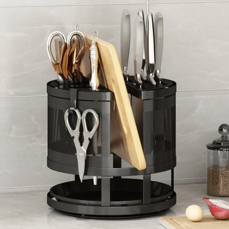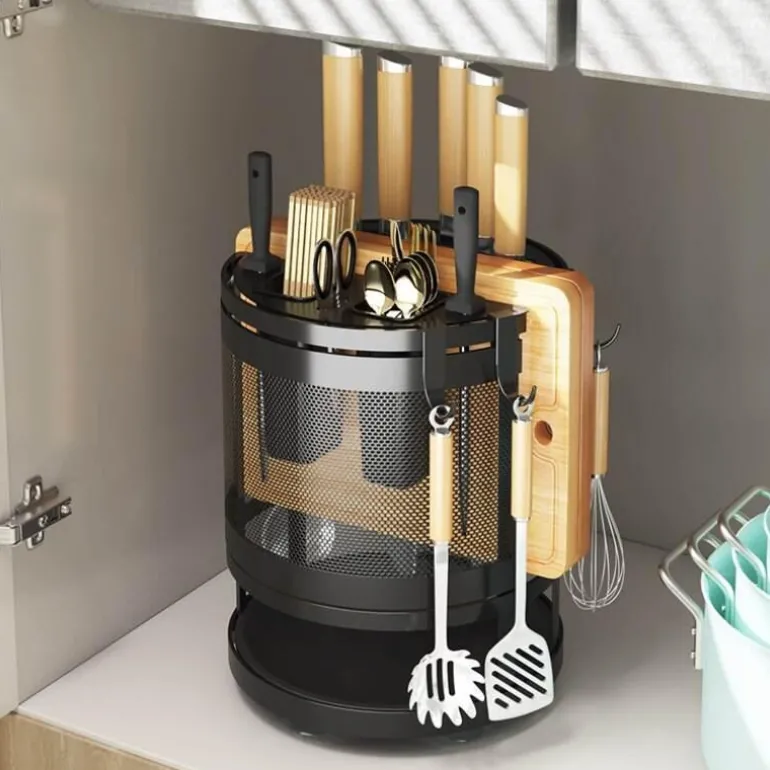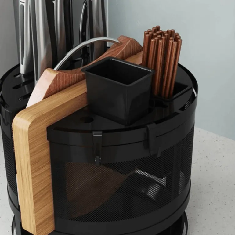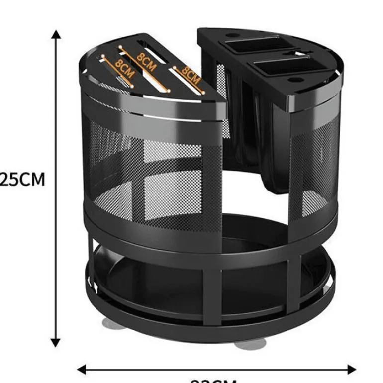 Diese Aufbewahrungslösung aus robustem Metall ist nicht nur funktional, sondern auch für den täglichen Gebrauch konzipiert. Ihr schlankes Design passt zu jeder Kücheneinrichtung und macht sie zu einer praktischen und ästhetisch ansprechenden Ergänzung für Ihr Zuhause. Schluss mit Unordnung und Chaos – dieses drehbare Regal hält alle wichtigen Dinge griffbereit und übersichtlich.