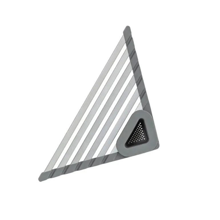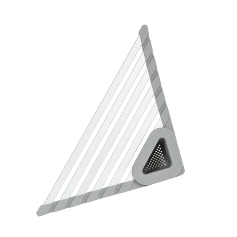 Das dreieckige Abtropfgestell für die Spüle ist die ideale Lösung für effektives Trocknen und hygienisches Abtropfen Ihres Küchengeschirrs. Hergestellt aus hochwertigen Aluminiumteilen und langlebigem Silikon verspricht dieses robuste Gestell Langlebigkeit bei gleichbleibender Funktionalität. Dank seines innovativen dreieckigen Designs passt es perfekt in jede Spüle, optimiert den Platz und bietet gleichzeitig eine vielseitige Abtropflösung für Geschirr, Obst, Gemüse, Tassen und Teller.