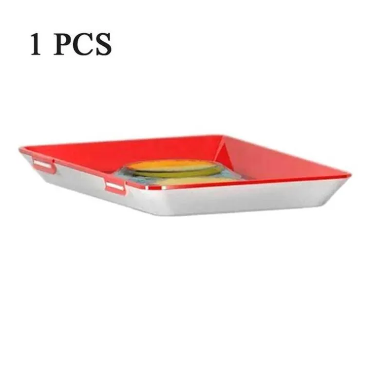 Dank seines platzsparenden Designs bietet dieses Tablett Vielseitigkeit für verschiedene Aufbewahrungszwecke. Es besteht aus wiederverwendbaren Materialien, lässt sich leicht waschen und wiederholt verwenden und ist somit eine nachhaltige Wahl für Ihre Lebensmittelaufbewahrung.