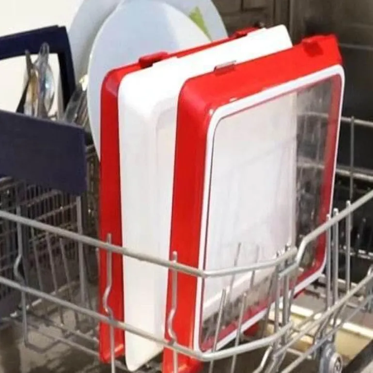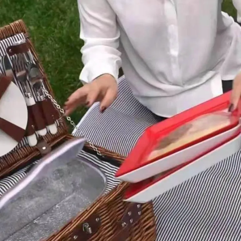 Dieses Tablett aus strapazierfähiger, elastischer Folie ist druck- und stoßfest und schützt Ihre Lebensmittel. Der benutzerfreundliche Schnallenmechanismus sichert Ihre Lebensmittel mühelos, bewahrt die Frische und verhindert Verschütten.