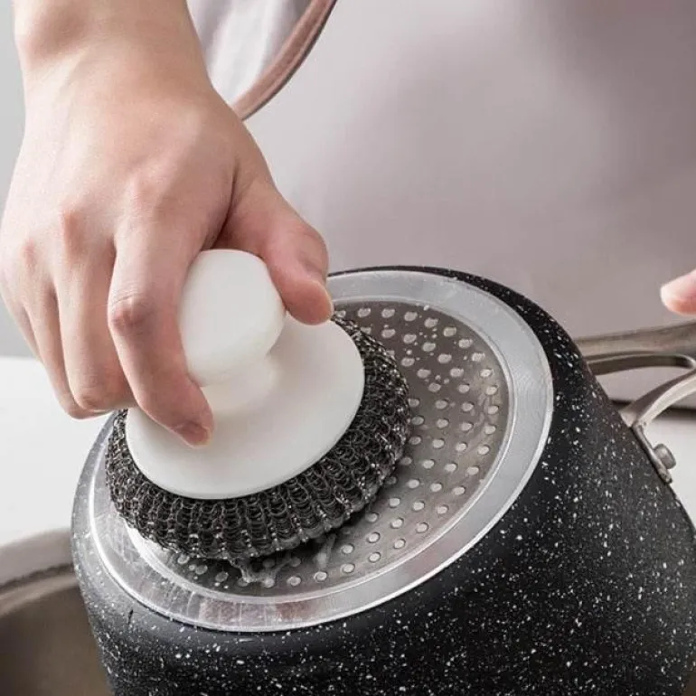 Im Lieferumfang enthalten ist eine Edelstahl-Kugelbürste, Ihr neuer Verbündeter, um Ihr Küchengeschirr jahrelang makellos und in ausgezeichnetem Zustand zu halten. Genießen Sie die Leichtigkeit des Geschirrspülens mit diesem unverzichtbaren Werkzeug, das auf Langlebigkeit und Vielseitigkeit ausgelegt ist.