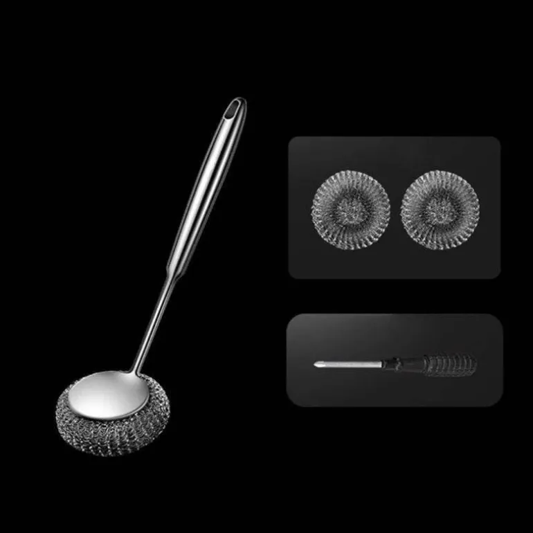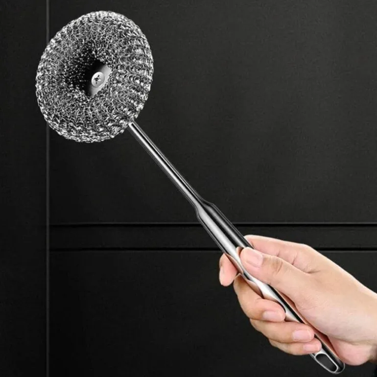 Wenn Sie ein effektives Werkzeug zum Entfernen hartnäckiger Speisereste benötigen, ist dieser langlebige Edelstahl-Schrubber genau das Richtige für Sie. Seine robuste Konstruktion ermöglicht die effiziente Entfernung von angebrannten Speiseresten und Fett, ohne Ihr wertvolles Kochgeschirr zu zerkratzen. Der komfortable Griff sorgt für ein einfaches und angenehmes Reinigungserlebnis und macht ihn zu einer praktischen Ergänzung Ihrer Küchenausstattung.