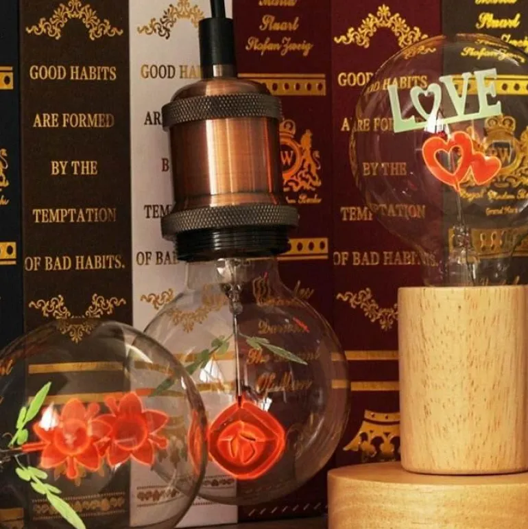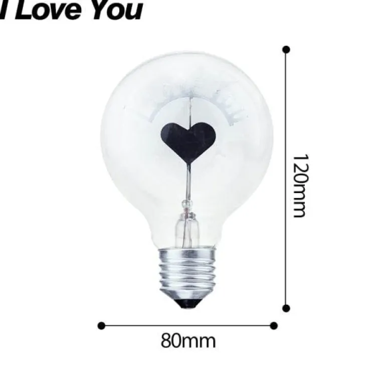 Die dekorative Vintage-Edison-Glühbirne „Love“ ist die perfekte Ergänzung für alle, die ihrem Raum Romantik und Wärme verleihen möchten. Mit ihrem eleganten Antikmessing-Finish verfügt diese Lampe über einen herzförmigen Glasschirm, der ein sanftes, einladendes Licht verbreitet und ideal ist, um in besonderen Momenten eine gemütliche und charmante Atmosphäre zu schaffen.