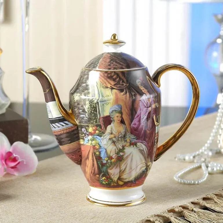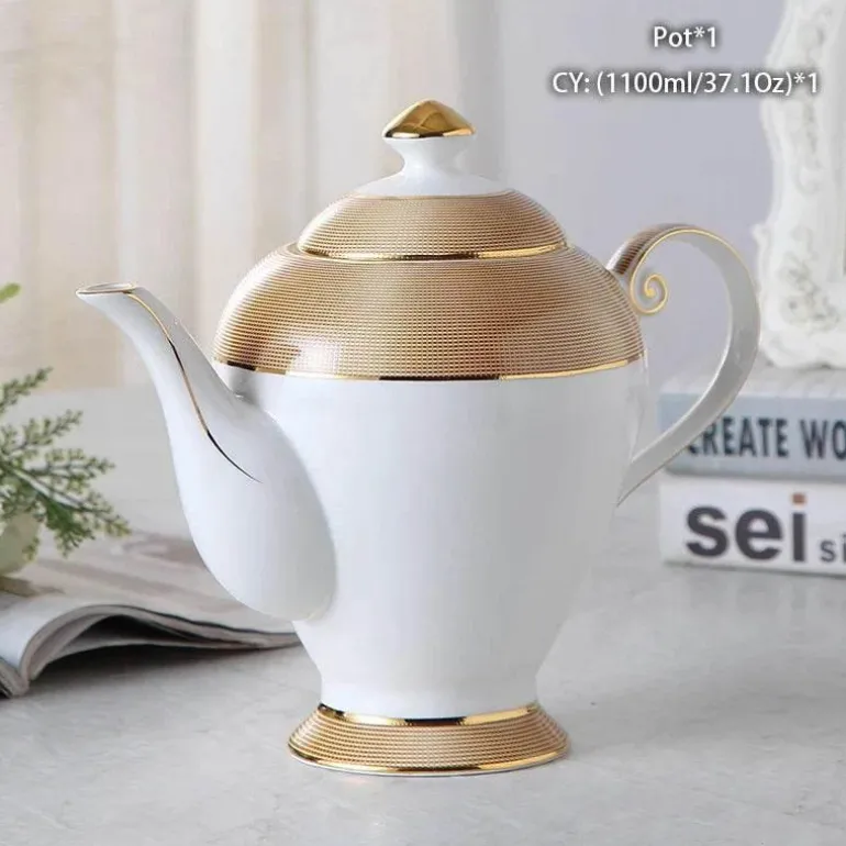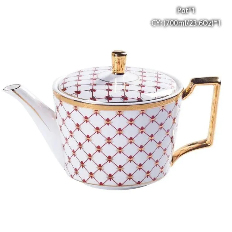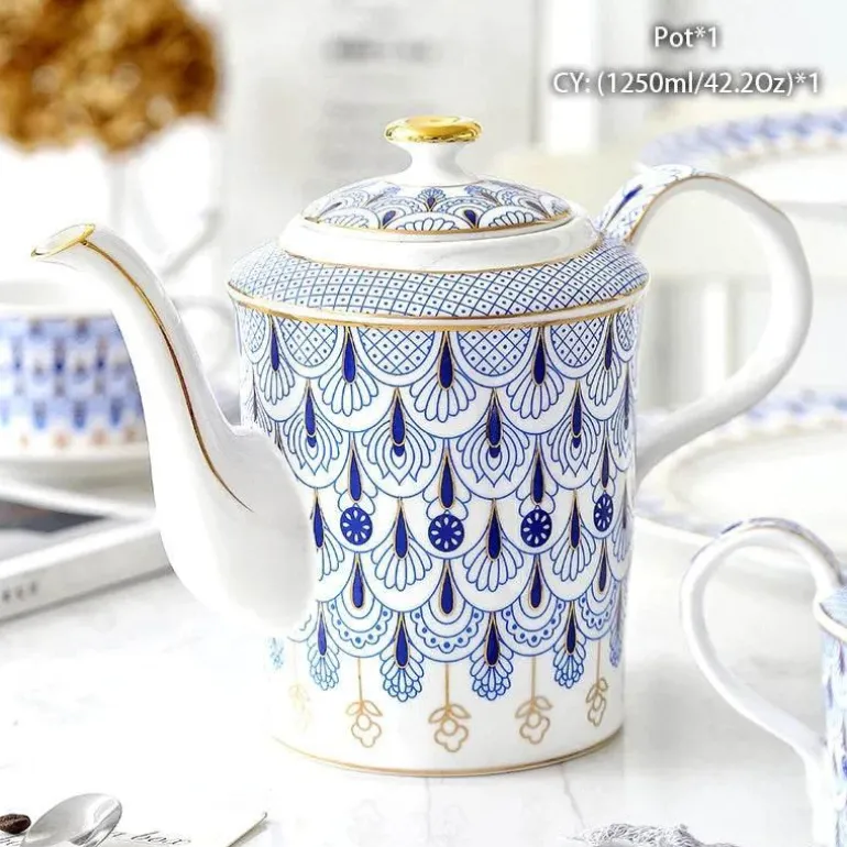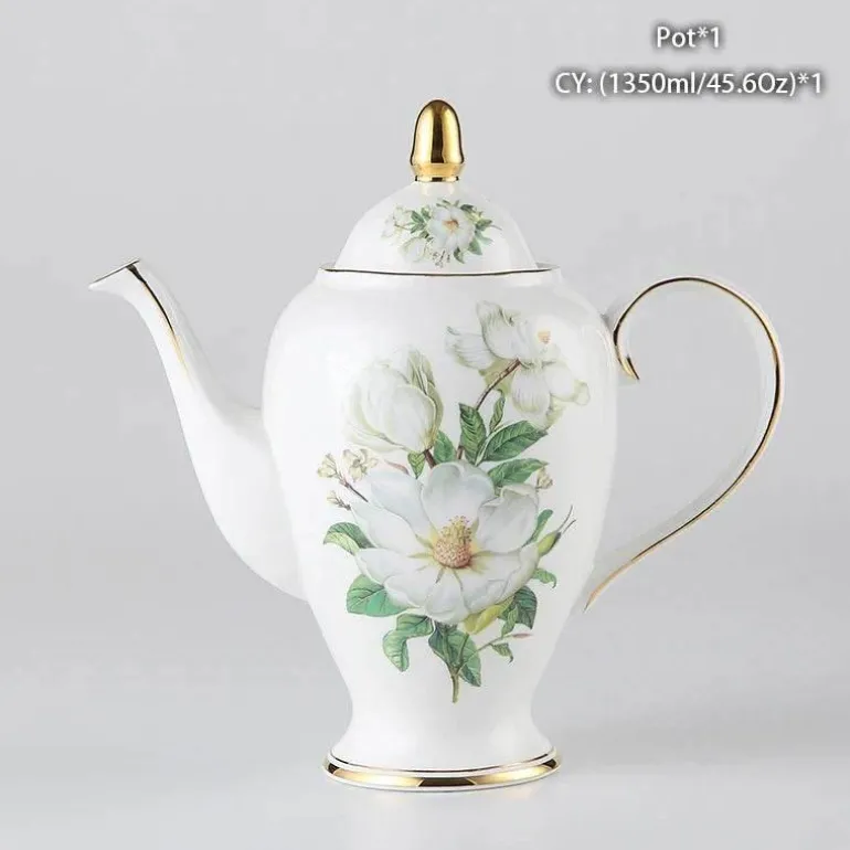 Erleben Sie den Charme der Teestunde mit dieser eleganten Teekanne aus hochwertigem europäischem Bone China. Entworfen für Teeliebhaber, die Wert auf Ästhetik und Funktionalität legen, bereichert dieses exquisite Stück Ihr Teeritual und verleiht jedem Anlass einen Hauch von Raffinesse.
