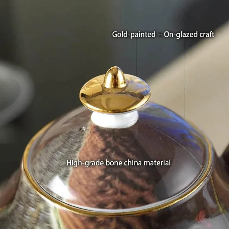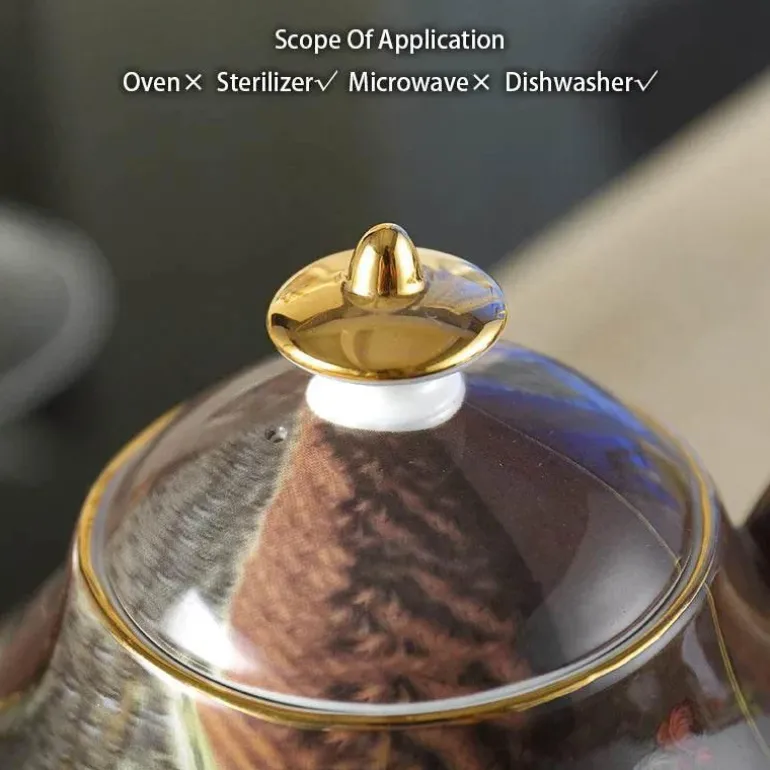 Diese Teekanne wird sicher in dickem Schaumstoff verpackt geliefert und kommt sicher zu Ihnen nach Hause. Sie ist nicht nur eine praktische Ergänzung Ihrer Trinkgeschirrsammlung, sondern auch ein liebevolles Geschenk für Freunde und Familie. Ob Sie einen gemütlichen Morgenkaffee genießen oder eine elegante Teeparty veranstalten – diese Teekanne aus Bone China wird Sie beeindrucken.