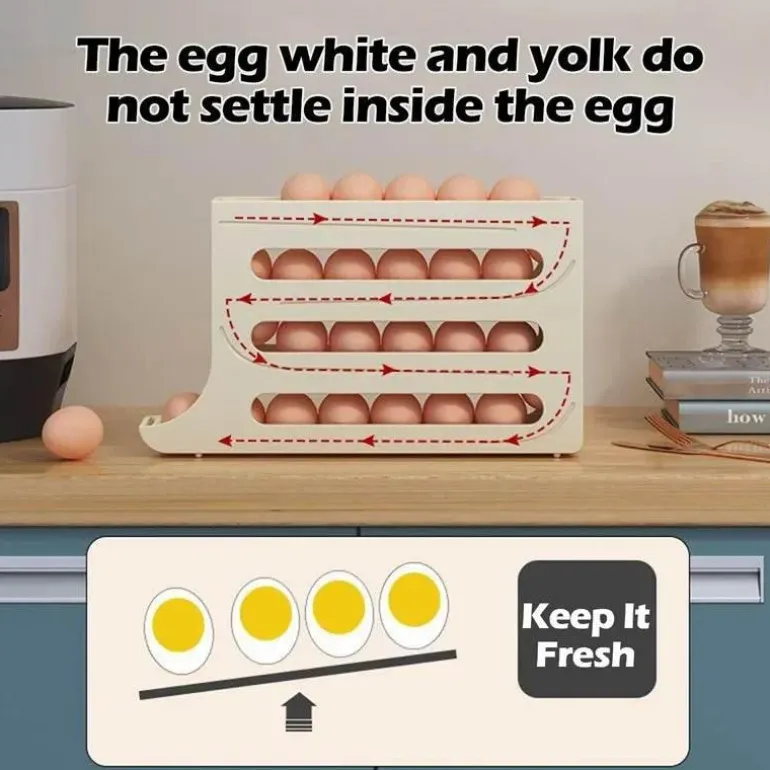 Im Paket enthalten ist ein Eierspendergestell, das Ihre Küchenorganisation verbessert.