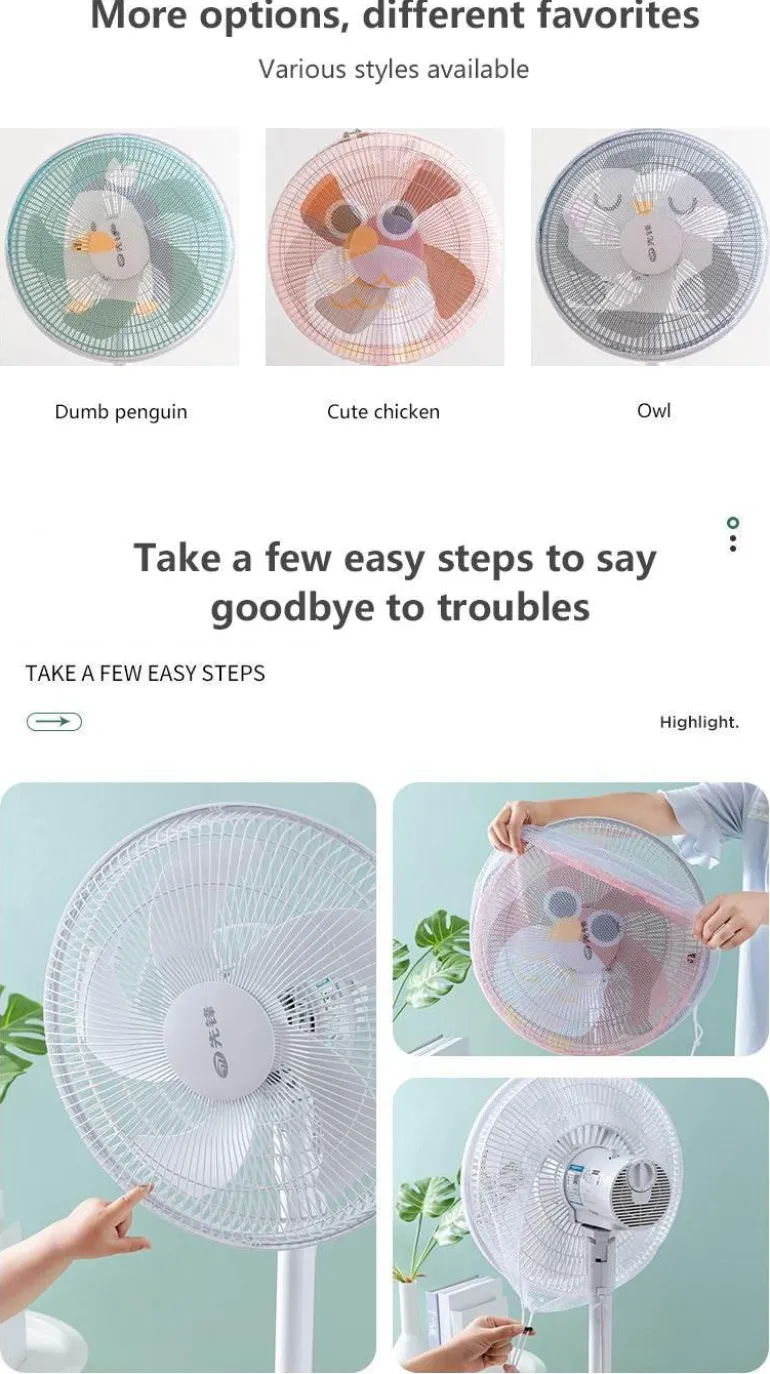 Die Einklemmschutzabdeckung bietet eine durchdachte Lösung für Haushalte mit Kindern oder Haustieren und hilft, versehentliche Verletzungen durch Lüfterblätter zu verhindern. Diese Schutzabdeckung lässt sich einfach über Ihren Ventilator stülpen und sorgt für sicheren Sitz bei optimaler Luftzirkulation.