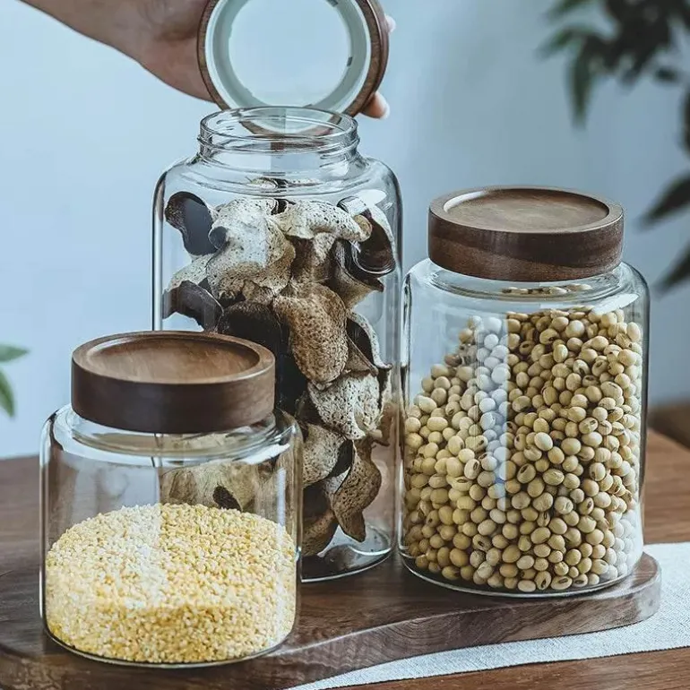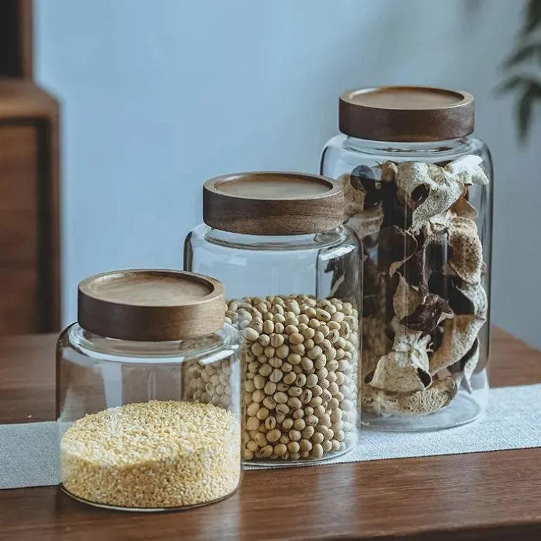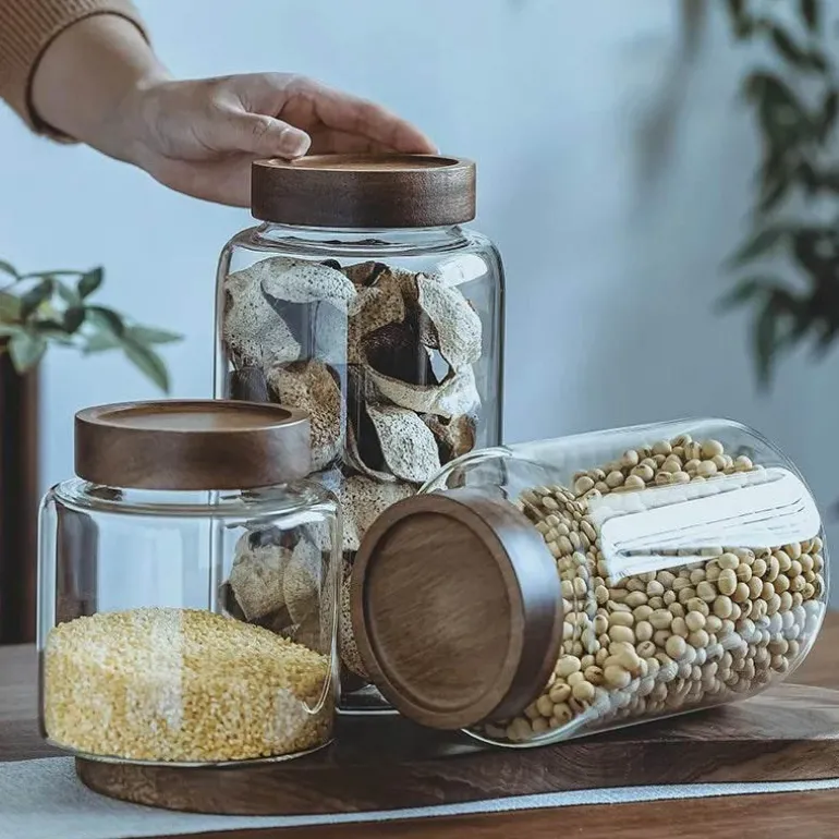 Verbessern Sie Ihr Kocherlebnis mit dem Mason-Vorratsbehälter aus Glas mit Bambusdeckel. Werten Sie Ihre Aufbewahrungslösungen in der Küche auf und sorgen Sie gleichzeitig für eine schicke und organisierte Atmosphäre.
