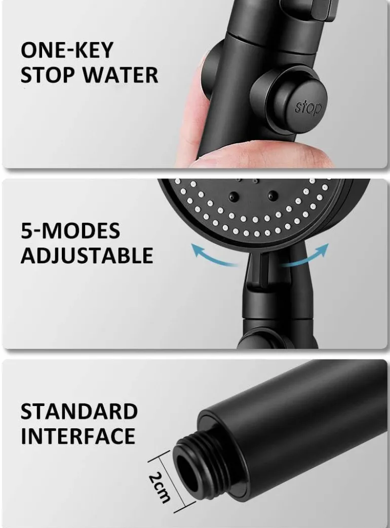 Der Duschkopf verfügt über fünf verschiedene Modi: Puls, Regen, Gemischt, Massage und Brause. Jede Einstellung sorgt für ein einzigartiges Duscherlebnis und einen feinen, dichten und gleichmäßigen Wasserstrahl, der sich sanft auf der Haut anfühlt.