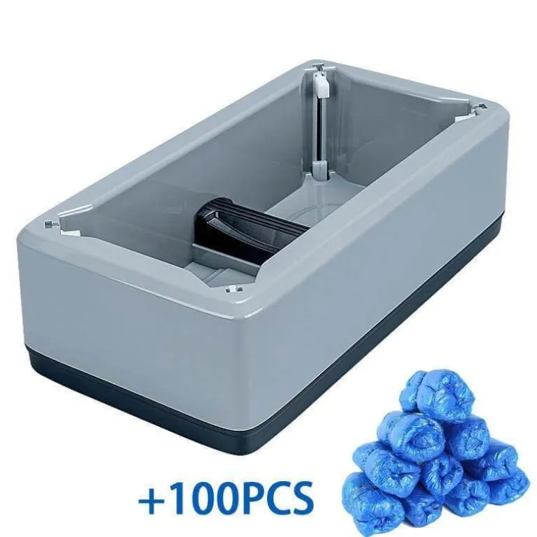 Das Paket enthält einen automatischen Überschuhspender und 100 Einweg-Überschuhe und bietet damit alles, was Sie brauchen, um Ihre Umgebung sauber und geschützt zu halten.