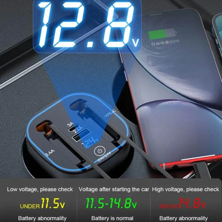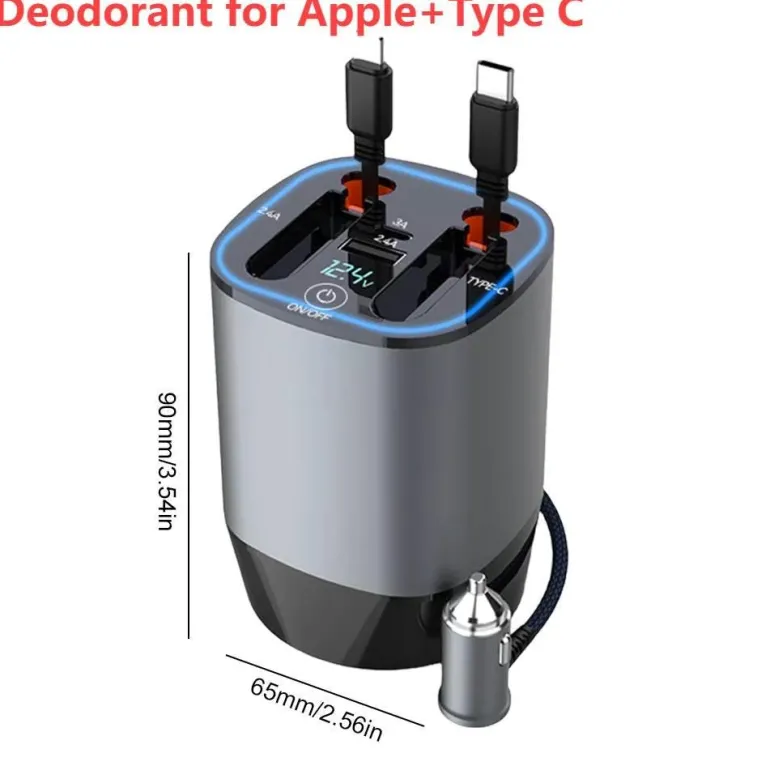 Bleiben Sie auch unterwegs verbunden und versorgt mit Strom – mit diesem innovativen Schnellladegerät fürs Auto, das auf Effizienz und Komfort ausgelegt ist. Dank des einziehbaren Kabels können Sie die Länge ganz einfach an Ihre Bedürfnisse anpassen und so für Ordnung in Ihrem Fahrzeug sorgen. Dank der Schnellladefunktion versorgt dieses Ladegerät Ihre Geräte schnell mit Energie und ist somit die ideale Wahl für einen aktiven Lebensstil.