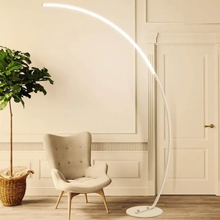 Verschönern Sie Ihren Wohnraum mit der eleganten, geschwungenen LED-Eckstehleuchte. Sie vereint Stil und Funktion perfekt und sorgt für warmes, einladendes Licht. Die Leuchte passt zu vielen Einrichtungsstilen und besticht durch ihre anmutig geschwungene Silhouette, die Ihrem Zuhause ein modernes Flair verleiht.