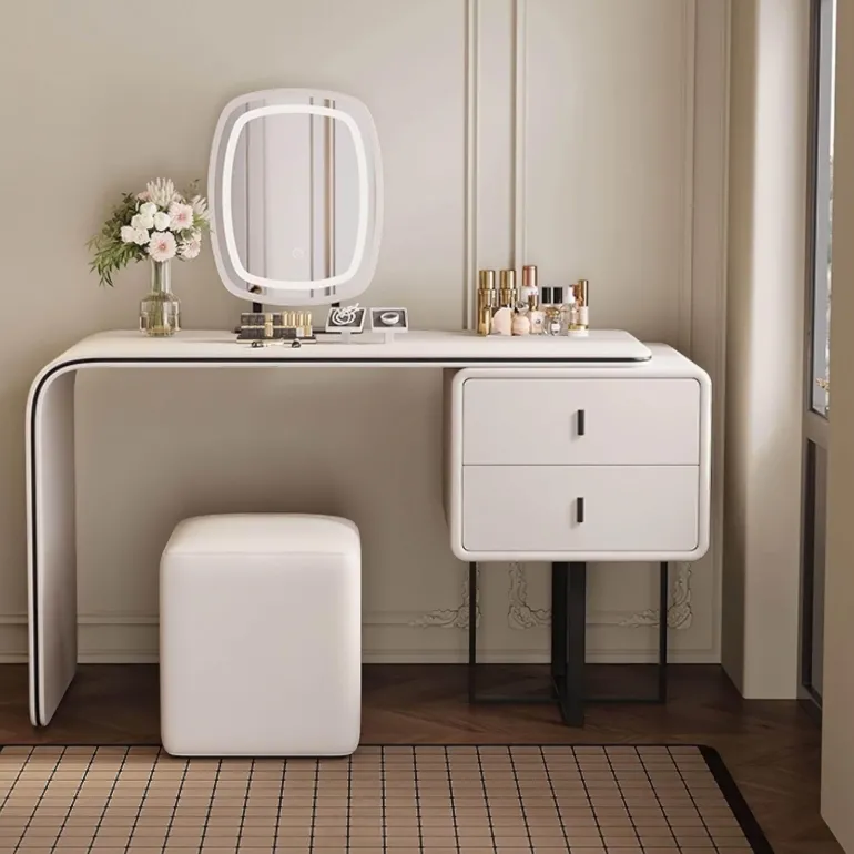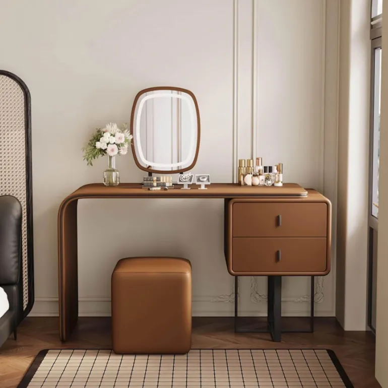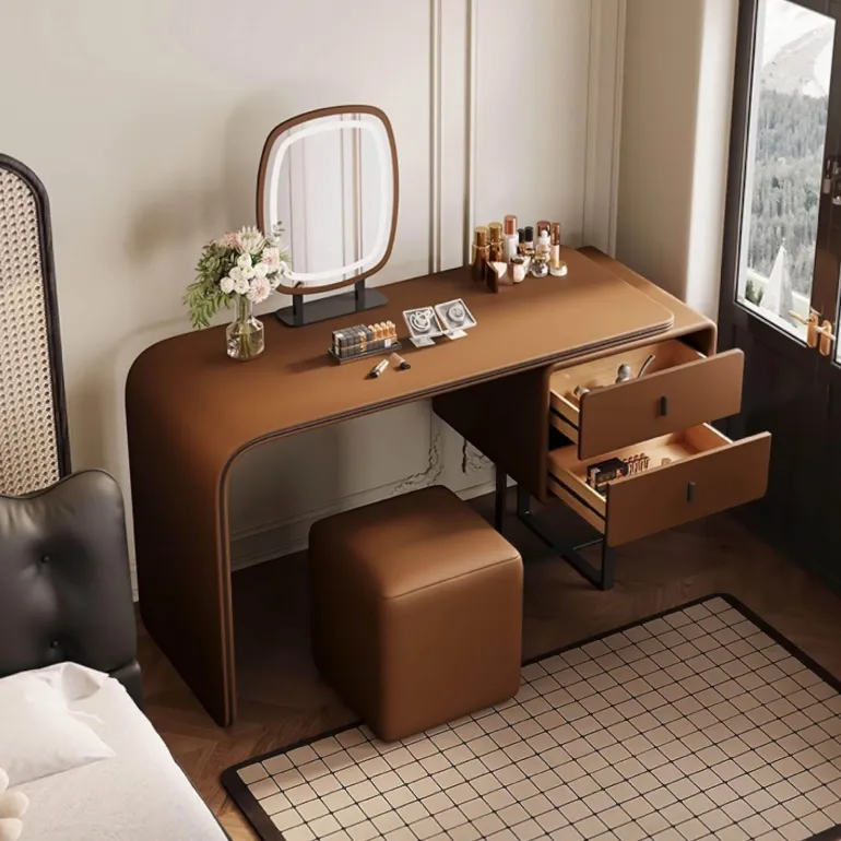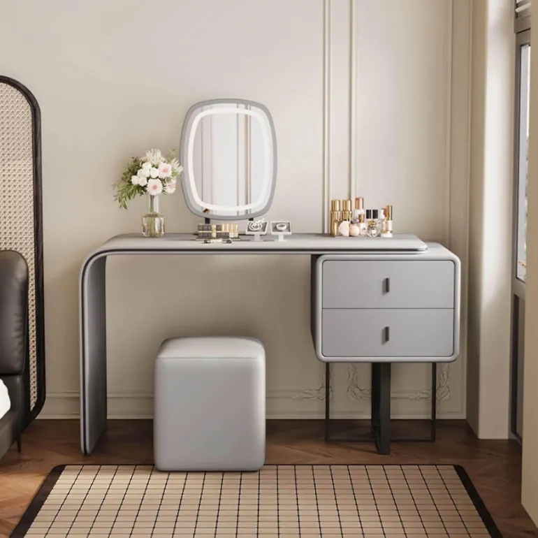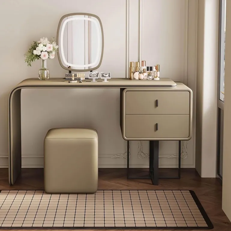 Der Schminktisch Rosario verfügt über ein vielseitiges, frei bewegliches Gehäuse, das sich sowohl für Links- als auch für Rechtshänder eignet. Dieses durchdachte Designelement erhöht nicht nur den Komfort, sondern passt sich auch mühelos Ihren individuellen Vorlieben an.