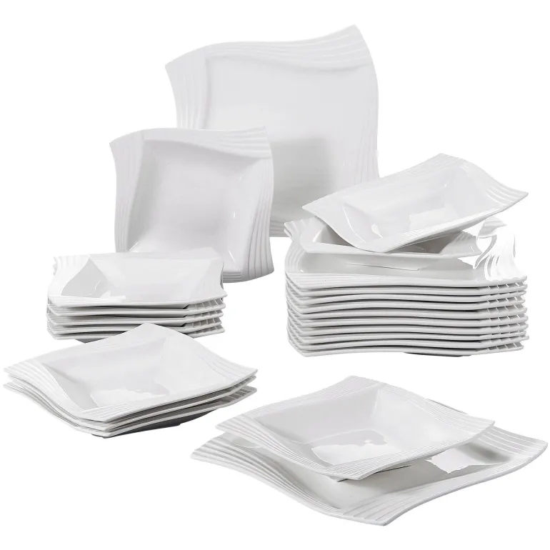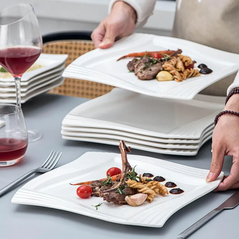 Das vielseitige Design dieses Geschirrs wertet verschiedene Tischarrangements auf und bereichert Ihre kulinarischen Präsentationen. Ob Sie eine elegante Dinnerparty veranstalten oder ein gemütliches Essen mit Freunden genießen – das Porzellan-Geschirrset Calou ist die perfekte Wahl für alle, die Wert auf raffinierte Ästhetik beim Essen legen.