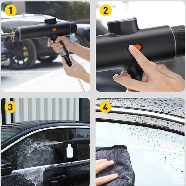 **Vielseitige Reinigungsoptionen**: Dieser Elektroreiniger ist nicht nur für Autos geeignet, sondern auch vielseitig genug, um Motorräder, Fahrräder und Gartenmöbel zu reinigen. Mit verstellbaren Düsen und anpassbaren Sprühmustern können Sie problemlos eine Vielzahl von Oberflächen reinigen, um Ihren Reinigungsanforderungen gerecht zu werden.
