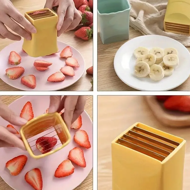 Mit diesem Erdbeerschneider, der mühelos Obst und Gemüse schneidet, wird die Zubereitung schnell und einfach. Dank seines kompakten und leichten Designs eignet er sich perfekt für den Heimgebrauch, Camping und Outdoor-Abenteuer.