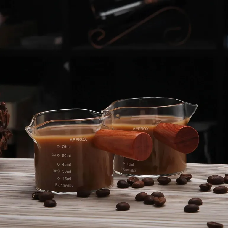 Mit einem Fassungsvermögen von 75 Millilitern eignet sich diese Espressokanne perfekt für die Zubereitung von reichhaltigem und ausgewogenem Espresso. Das transparente Glas präsentiert die faszinierenden Facetten Ihres Gebräus, das anmutig aus den Doppelausgüssen fließt, und ermöglicht es Ihnen, Ihre Barista-Fähigkeiten mit Stolz zu präsentieren.
