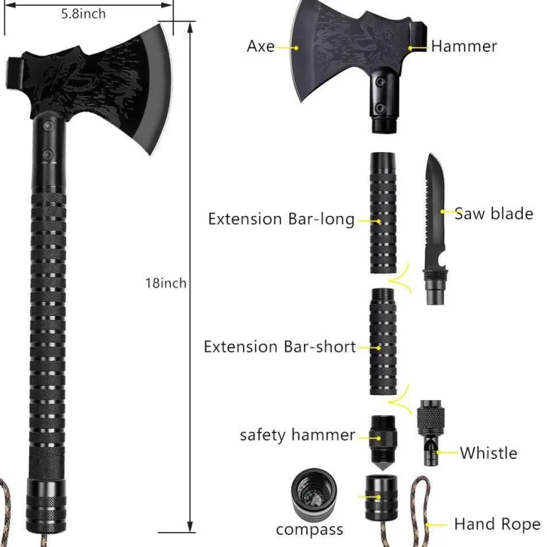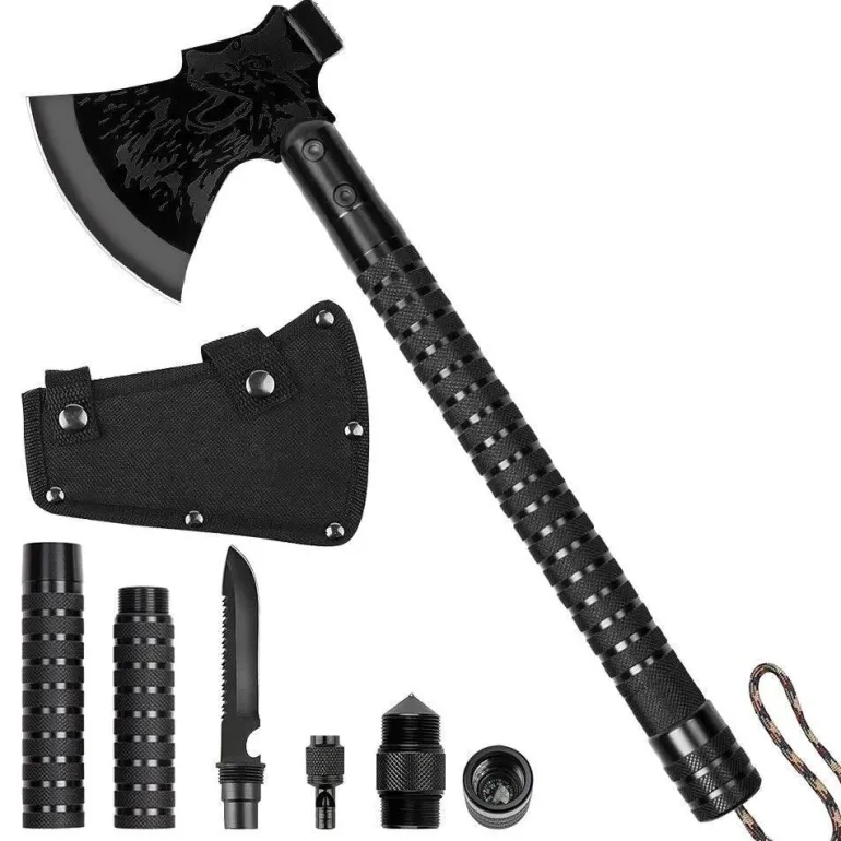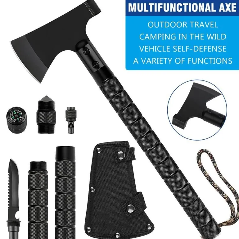 Diese multifunktionale Axt verfügt über eine Vielzahl integrierter Werkzeuge und bietet die nötige Vielseitigkeit für vielfältige Outdoor-Aufgaben. Ob Sie Holz für ein Feuer hacken, einen Unterschlupf bauen oder Mahlzeiten zubereiten – diese kompakte Überlebensausrüstung erfüllt Ihre vielfältigen Bedürfnisse mit Leichtigkeit.