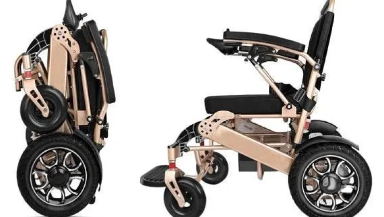 – **Stil:** Leichter, faltbarer Elektrorollstuhl aus Aluminium