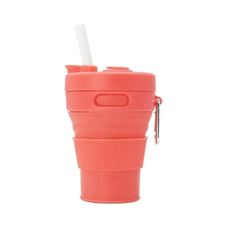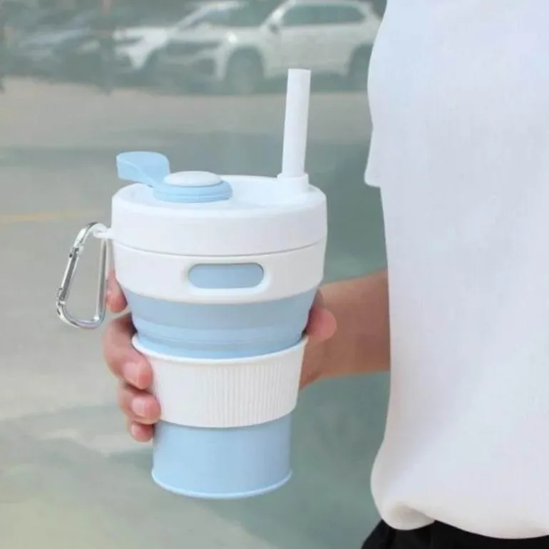 1 x wiederverwendbarer, tragbarer, zusammenklappbarer Trinkbecher zum Mitnehmen.
