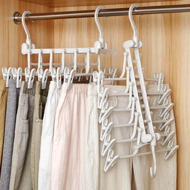 Das innovative, faltbare Design ermöglicht eine einfache Aufbewahrung bei Nichtgebrauch und optimiert so den Platz im Kleiderschrank. Dieser platzsparende Kleiderständer ist ideal für alle, die eine Alternative zu herkömmlichen Kleiderbügeln suchen. Er bietet Platz für bis zu sechs Kleidungsstücke gleichzeitig.