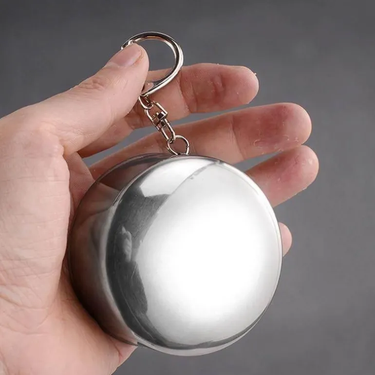 1 x faltbarer, tragbarer Campingbecher aus Edelstahl mit Schlüsselanhänger.