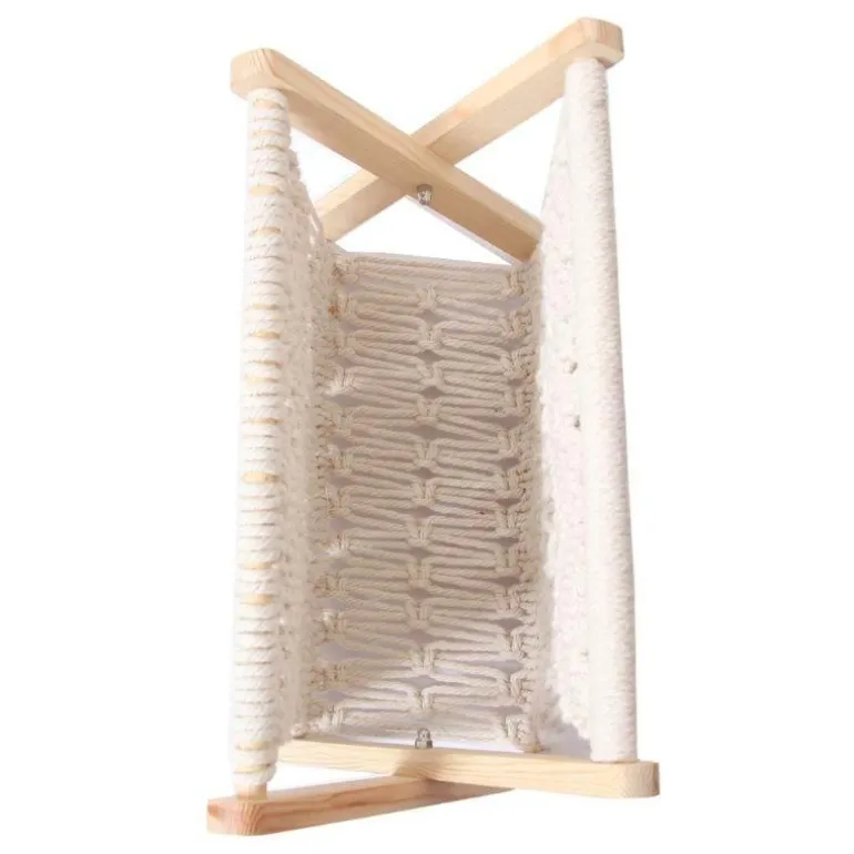 Der Aufbau dieses Zeitschriftenhalters ist kinderleicht. Alle benötigten Teile und eine ausführliche Anleitung liegen bei. Hergestellt aus hochwertiger Baumwolle und Holz, verspricht dieser Makramee-Ständer Robustheit und eine ansprechende Optik.