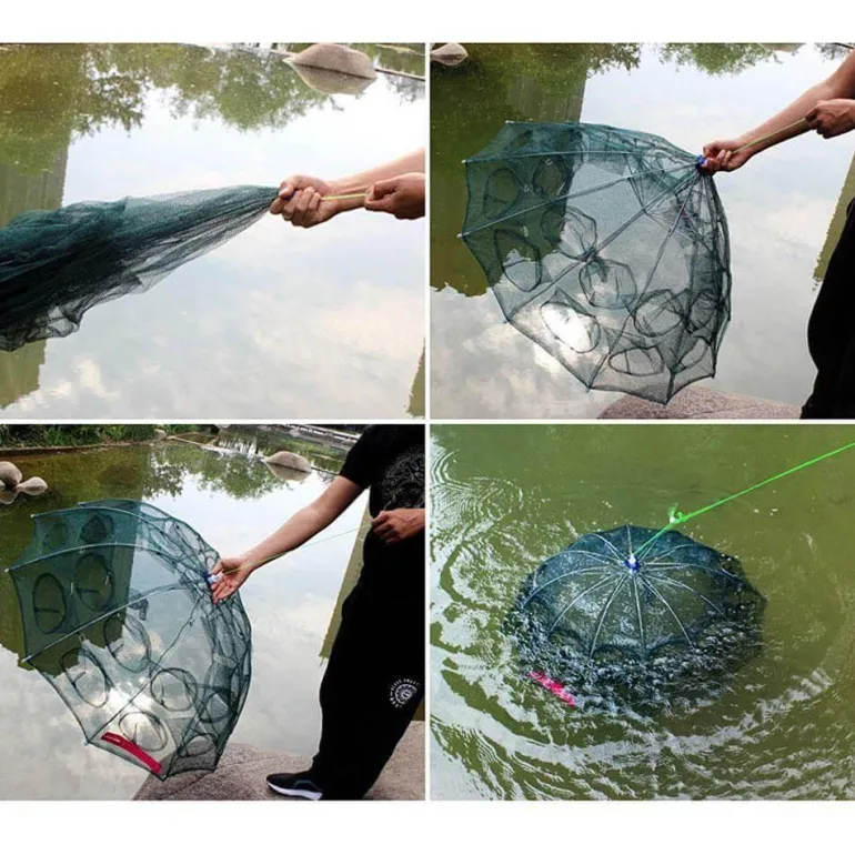 Erleben Sie stressfreies Angeln mit unserem faltbaren automatischen Fischernetz, das für effektive und effiziente Fänge entwickelt wurde. Dieses innovative Netz verfügt über einen robusten Schirmrahmen, der Langlebigkeit und Rostbeständigkeit gewährleistet. Mit strategisch platzierten Garneleneinlässen zwischen den Rippenpaaren ist dieses Netz ideal zum Fangen von Fischen, Garnelen, Krabben und mehr. Das einzigartige Design von groß nach klein ermöglicht Wasserlebewesen einen einfachen Zugang und erschwert gleichzeitig die Flucht.