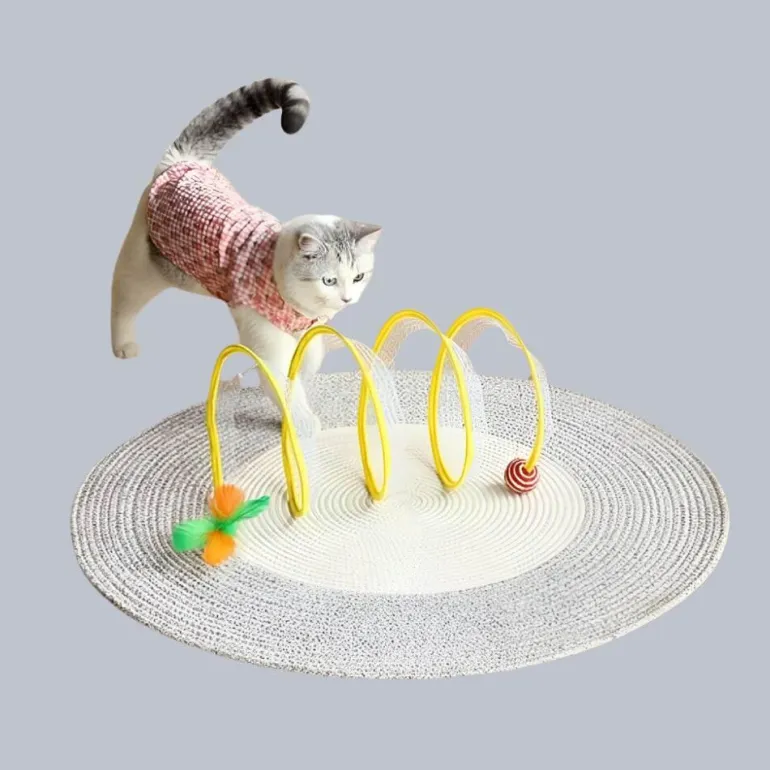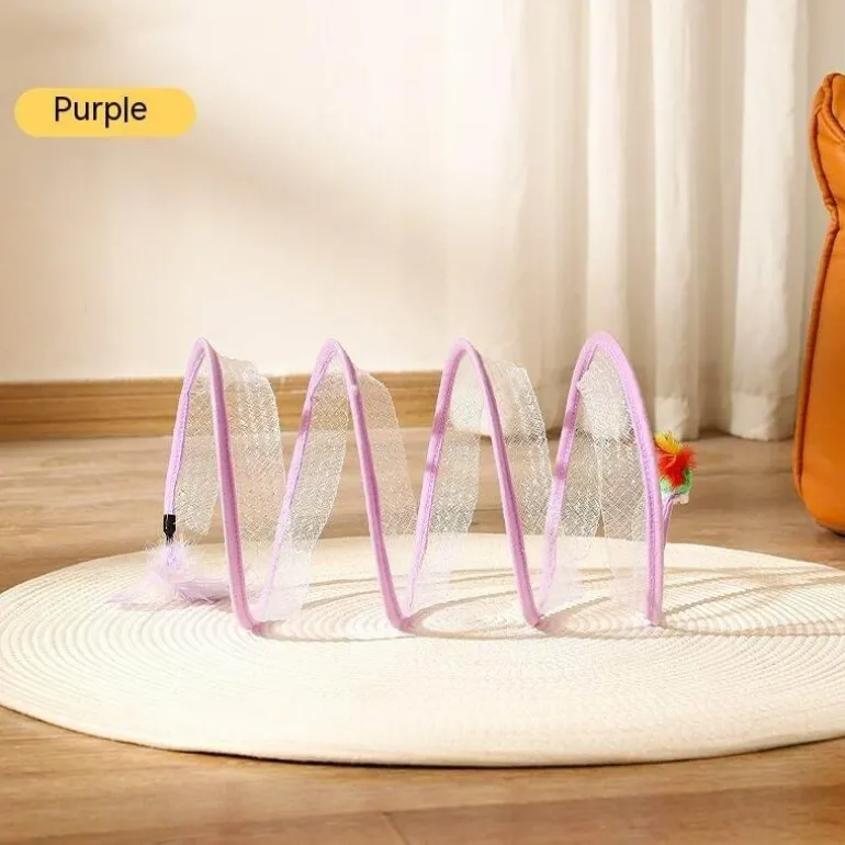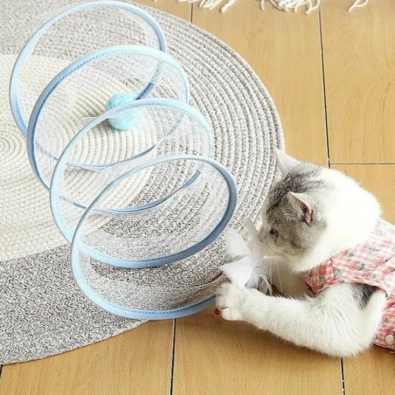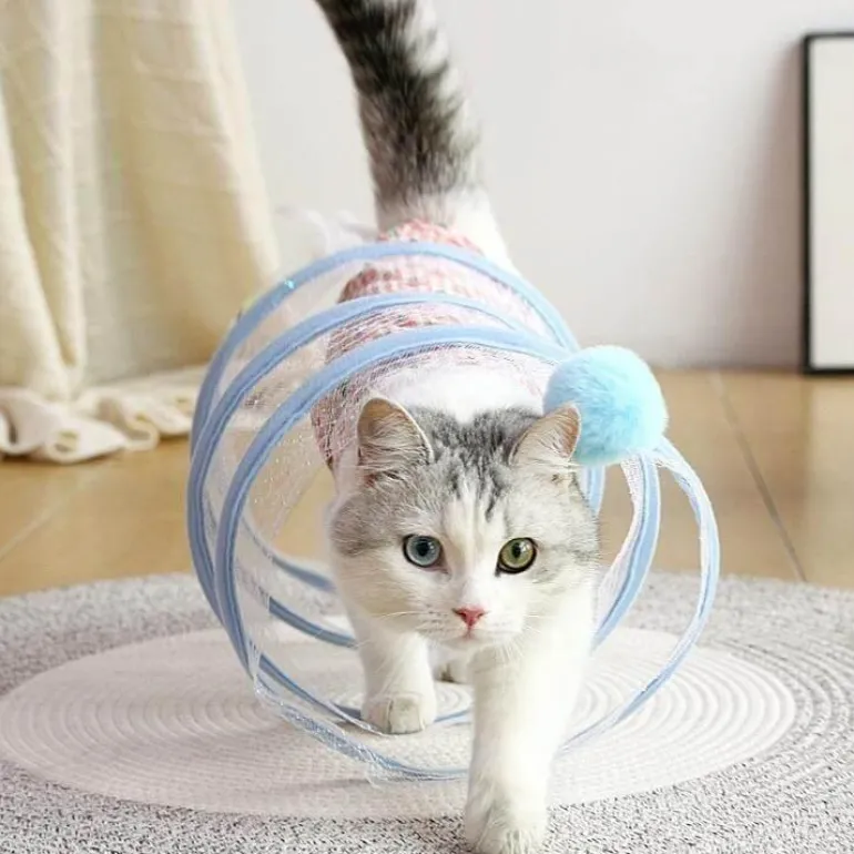 Das elastische und platzsparende, zusammenklappbare Design sorgt für stundenlange Unterhaltung für Ihre geliebte Katze, während die einzigartige Spiralstruktur die Neugier weckt und zum Spielen anregt. Dieser Tunnel bietet eine sichere Umgebung, in der Ihre Katze alles erkunden und genießen kann.