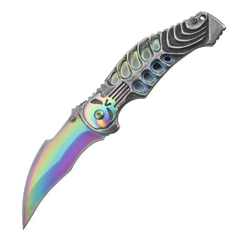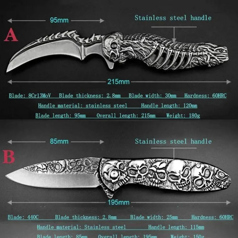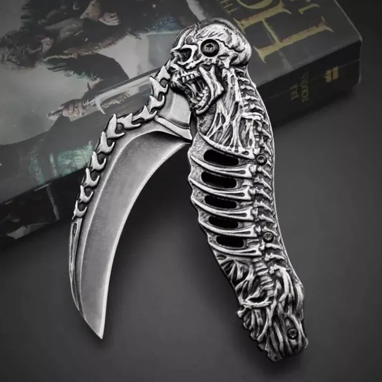 Dieses robuste und langlebige, faltbare Taschenmesser besticht durch sein taktisches Design mit einem markanten Totenkopfmotiv. Es eignet sich perfekt für verschiedene Outdoor-Aktivitäten oder als praktisches Werkzeug für den Alltag (EDC). Sein kompaktes Design ermöglicht einen sicheren und bequemen Transport. Das Messer verfügt über eine scharfe, zuverlässige und effiziente Edelstahlklinge und einen stabilen Griff, der bei jeder Schneidaufgabe sicheren Halt bietet. Ob Outdoor-Enthusiast oder Sammler, dieses taktische Totenkopfmesser ist eine funktionale Ergänzung Ihrer Ausrüstung.