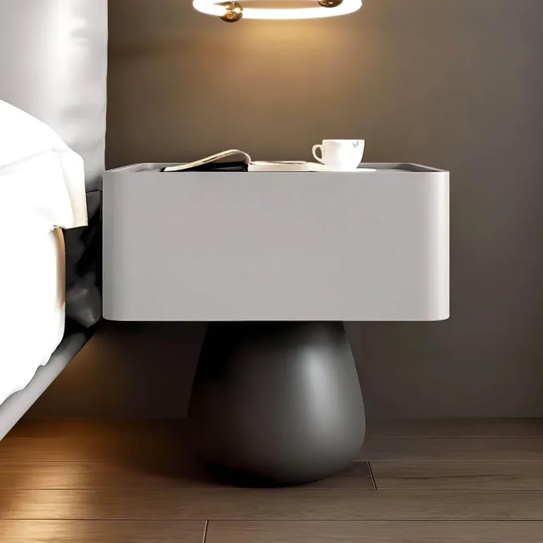 Das herausragende Merkmal des Nachttisches ist seine elegant versteckte Schublade. Sie bietet ausreichend Platz, um wichtige Dinge übersichtlich und unsichtbar aufzubewahren und sorgt so für ein sauberes und aufgeräumtes Erscheinungsbild. Sein minimalistisches Design und die glatte Oberfläche werten moderne Einrichtungsstile mühelos auf und machen ihn zur idealen Ergänzung für jeden Wohnraum.