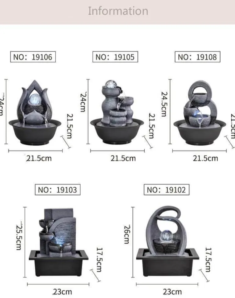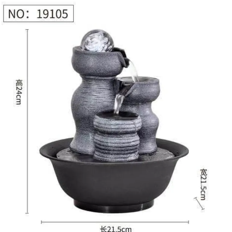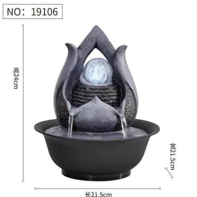 Das sanfte Geräusch fließenden Wassers schafft eine beruhigende Atmosphäre und macht ihn zu einer hervorragenden Ergänzung für jeden Raum. Sein elegantes Design dient nicht nur als beruhigender Blickfang, sondern ergänzt auch Ihre Wohnkultur wunderbar. Ob im Wohnzimmer, im Meditationsbereich oder im Büro – dieser Springbrunnen hebt Ihre Stimmung und verleiht Ihrer Umgebung ein Gefühl der Ruhe.