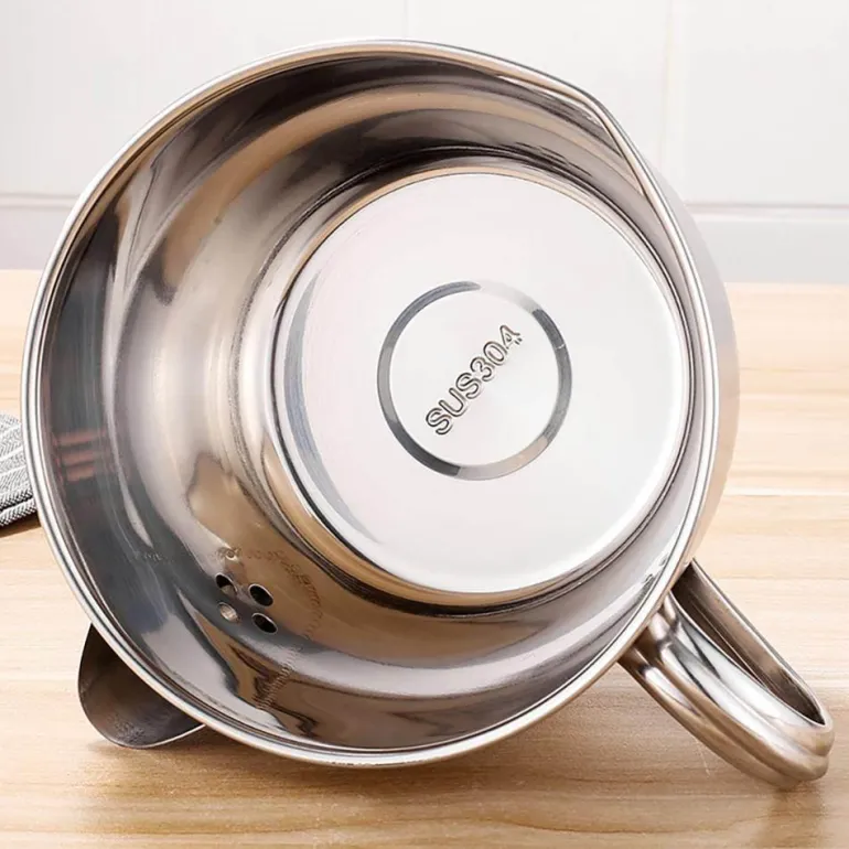 Edelstahl 304, hochglanzpoliert, dick und langlebig, leicht zu reinigen. Der verbreiterte Griff liegt gut in der Hand, ist angenehm zu handhaben und die elektrische Schweißnaht am Ölauslass ist fest und langlebig und fällt nicht leicht ab.