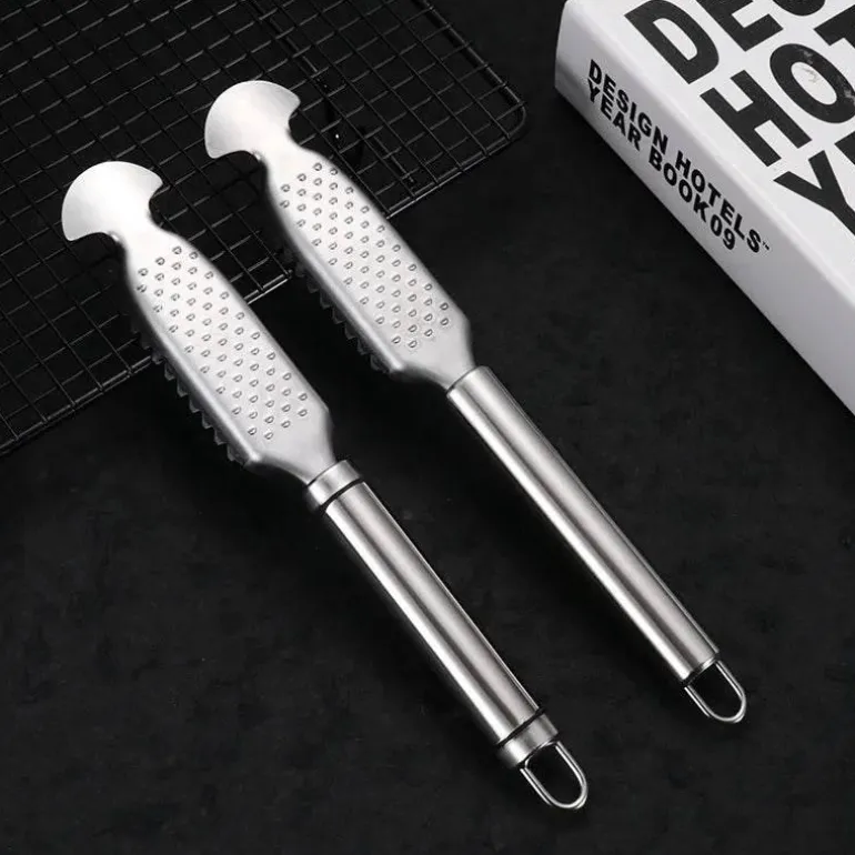 Der Ginger Grind Fischschaber ist ein praktisches Küchengerät, das speziell zum effizienten Entfernen von Fischschuppen entwickelt wurde. Hergestellt aus hochwertigem 430er Edelstahl, vereint dieses Werkzeug Langlebigkeit mit Funktionalität und ist somit eine zuverlässige Ergänzung Ihrer Kochutensilien.