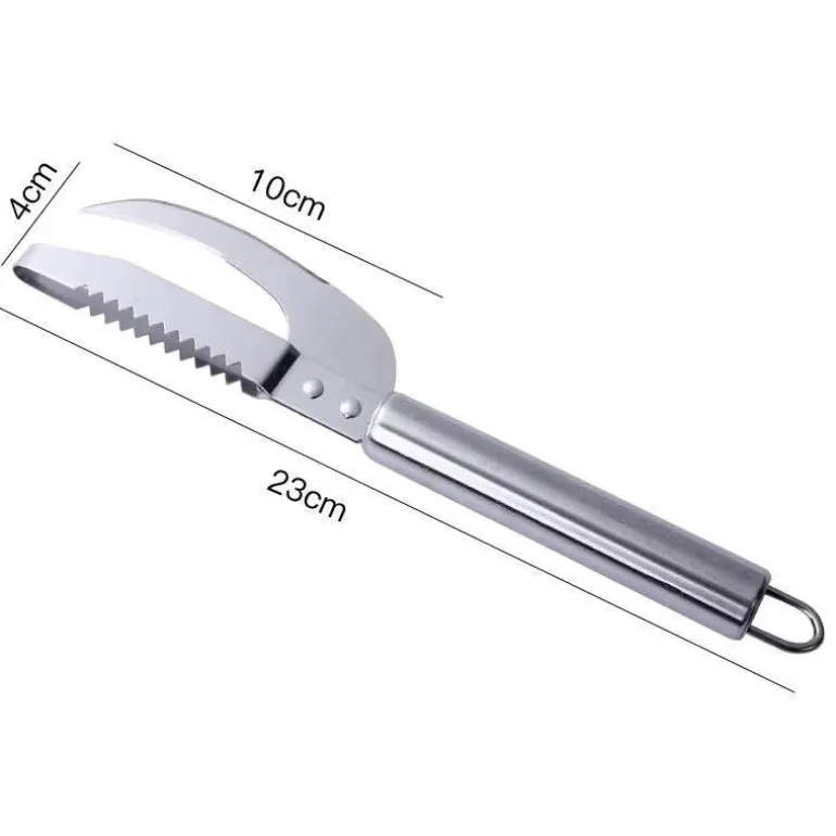 Dieser Schaber wurde für Meeresfrüchteliebhaber entwickelt und besticht durch seine schlanke und ergonomische Form, die bequem in der Hand liegt. Die hochwertige Edelstahlkonstruktion sorgt für langanhaltende Leistung, während die scharfe Klinge mühelos durch Schuppen und Haut gleitet und Ihnen die mühelose Zubereitung verschiedener Fischarten ermöglicht.